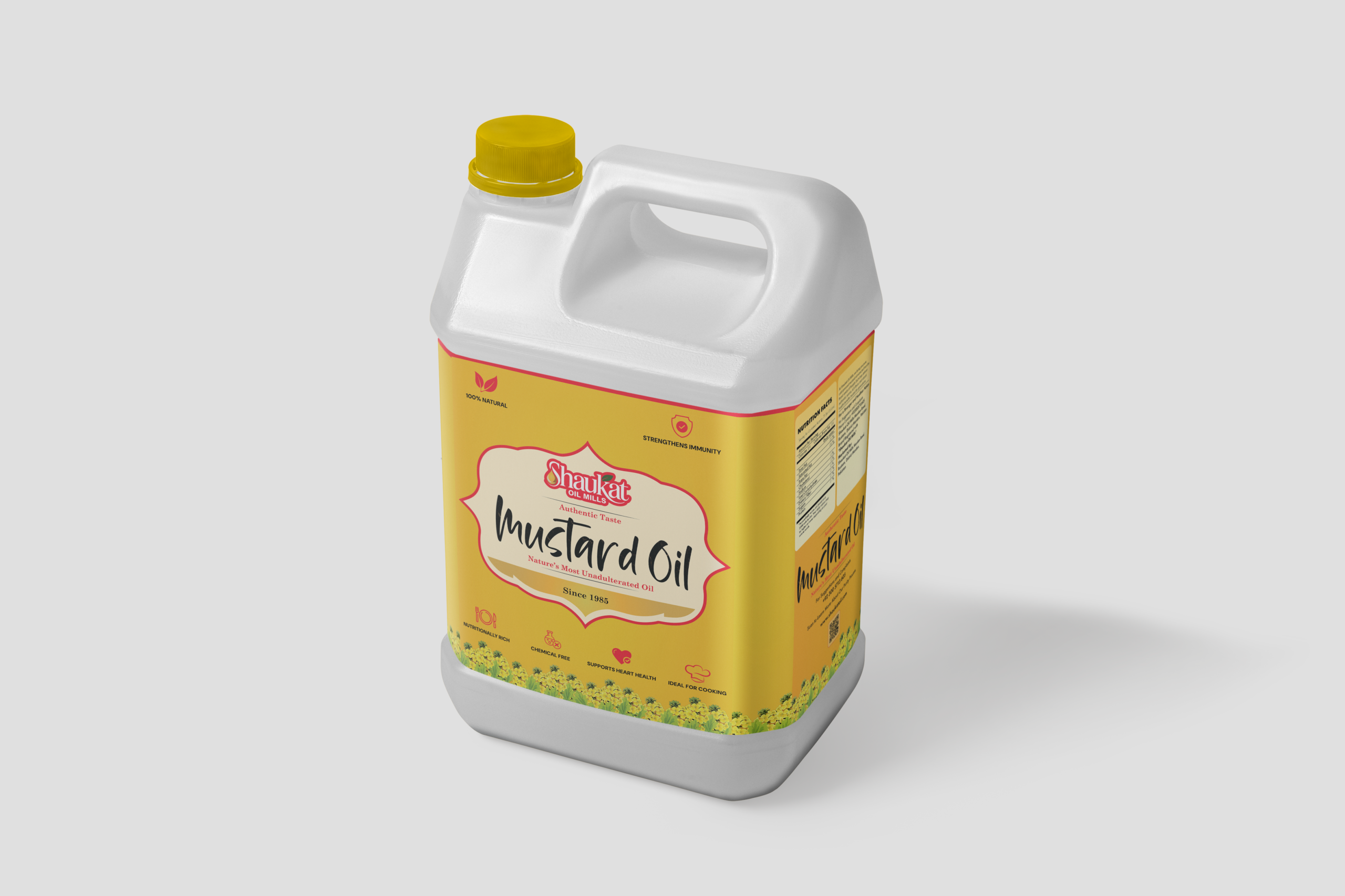 Buy 10 litre pure Kachi Ghani mustard oil from Shaukat Oil Mill. 100% natural cold-pressed sarson ka tail for home cooking, frying & hair care. Mill-direct price. Order now across Pakistan.
